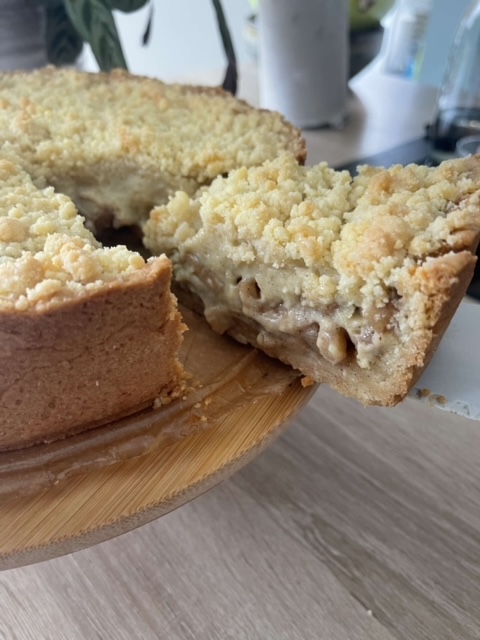 Nieuwe week en dat betekend een nieuw gebak. Deze keer een heerlijke appel taart met pudding. Bovenop de taart ligt een lekkere crumble die het net allemaal wat lekkerder maakt.