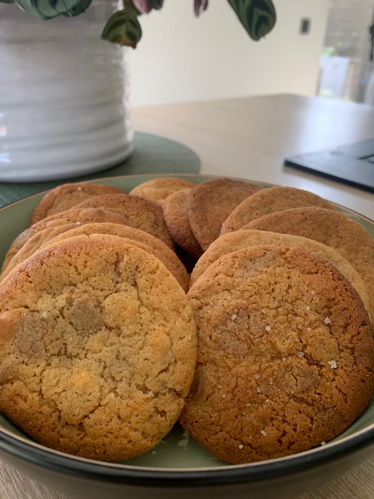 Karamel zeezout witte chocolade koekjes